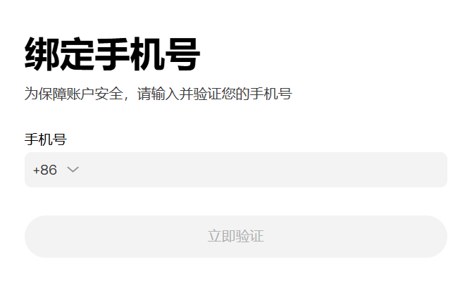 输入验证码后绑定手机号,同样需要输入验证码。