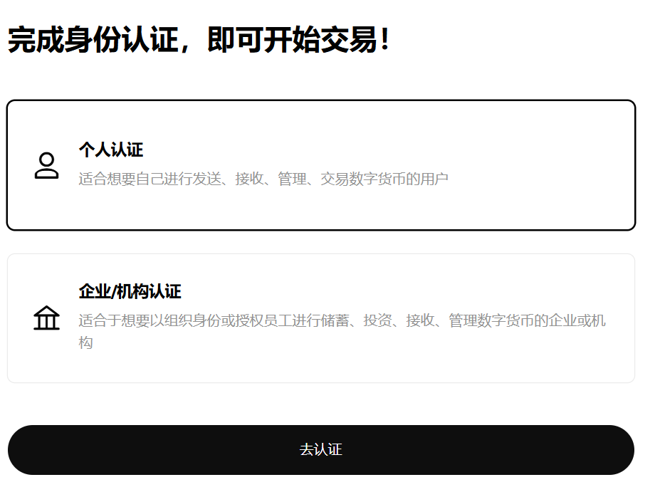但是想要进行交易,你还需要进行身份认证,按照系统的提示一步一步来就好了,国内用户也可以通过认证的。
